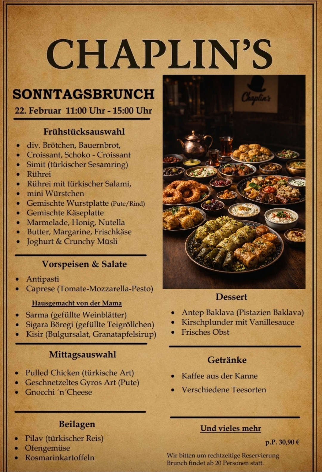 Das Bereisen von vielen Ländern und Kontinenten hatte schon immer einen sehr großen Einfluss auf meine Leidenschaft. Dies spiegelt sich auch in der Auswahl der Steaks, den Specials und der Speisekarte des Chap’s wieder. Das Chaplin’s Steakhouse legt sehr viel Wert auf eine eigenständige Persönlichkeit, einen Sinn für Humor und das, was am Wichtigsten ist: ein großes Herz für unsere Gäste.